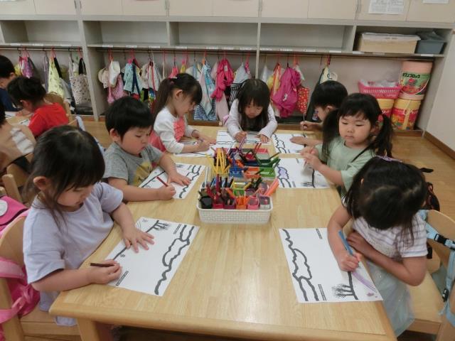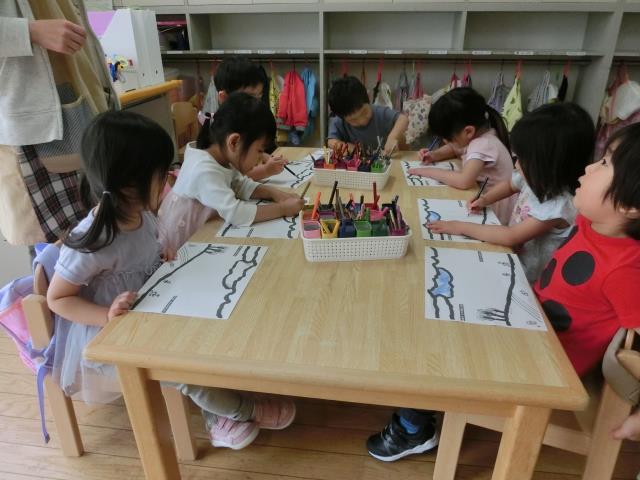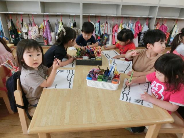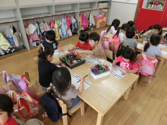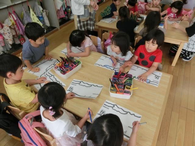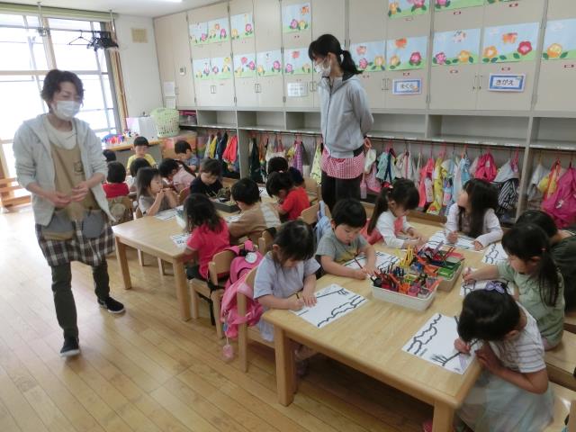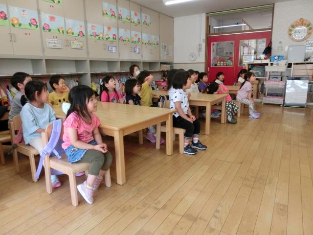 今日は園外保育でしたが、残念ながら雨天のため、各クラスでお楽しみ会をして過ごしています。