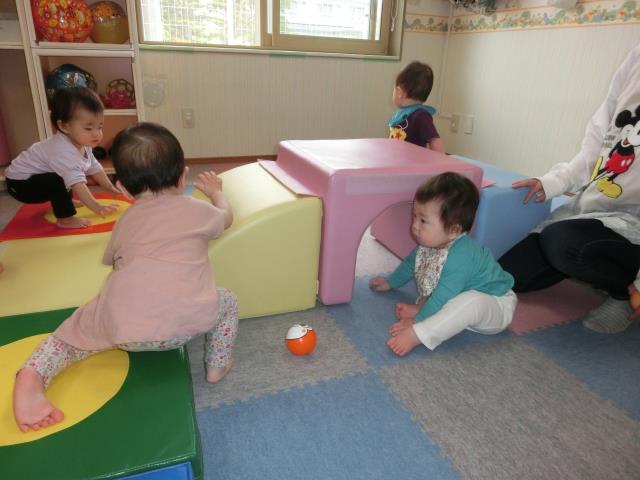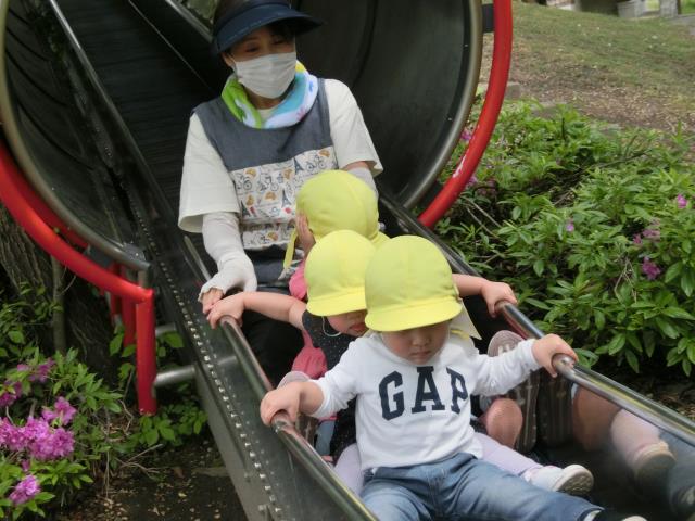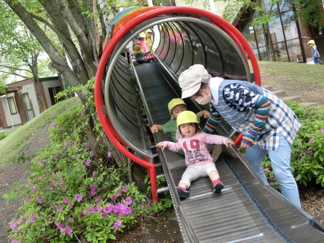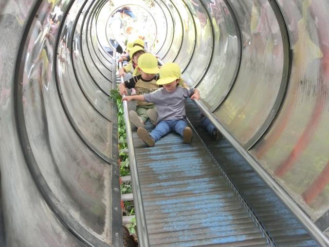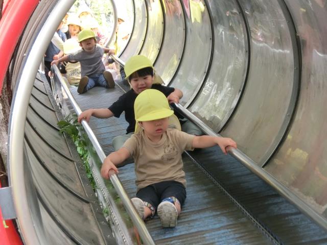 お友だちと一緒にトンネルを覗いたり、先生とすべり台を滑ったりして楽しみました。