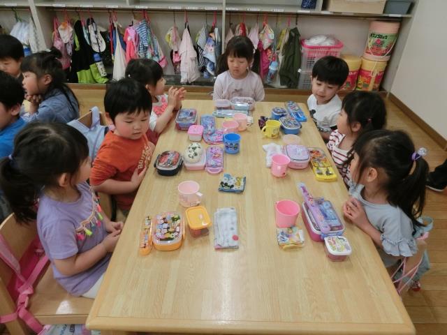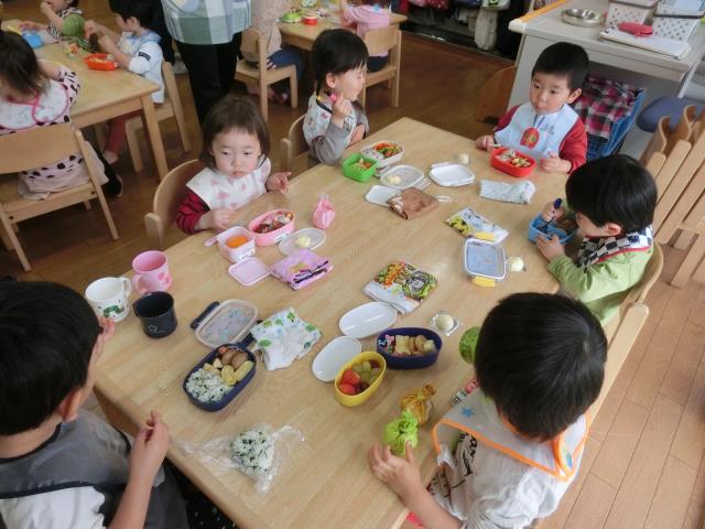 お弁当はホールですみれぐみさんと仲良く食べています。