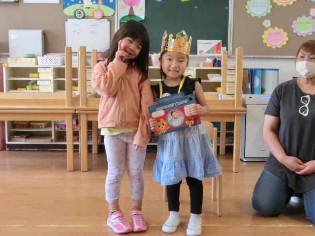 ちょっぴり緊張顔でしたが、お友だちからお誕生カードをもらい、にっこり笑顔でしたよ。
