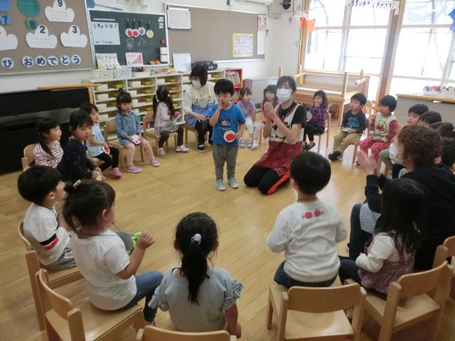 さくらぐみは、クラスのみんなで歌のプレゼントをしたり、お誕生児のお友達にインタビュ―をし、好きな食べ物や動物を教えてもらいました。