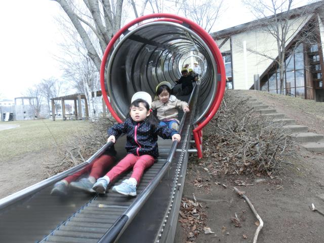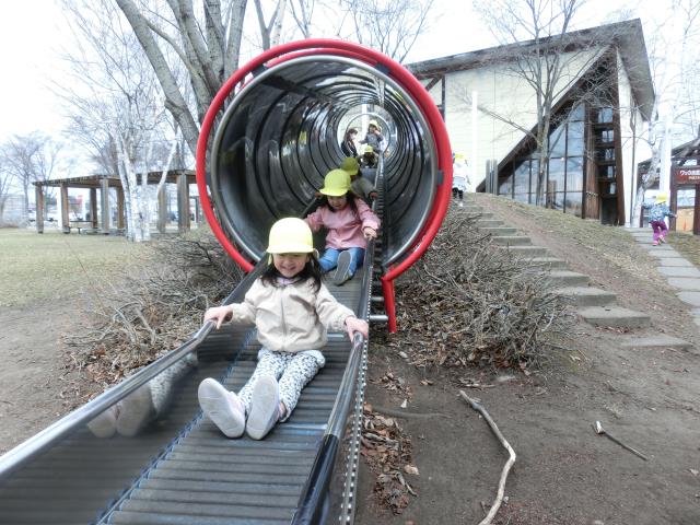 滑り台も何回も滑って、スピード感や面白さを味わっていましたよ。