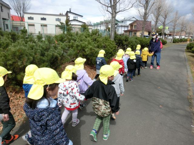 今日のさくらぐみは、ポカポカ陽気の中、桜町公園まで散歩に出掛けています。