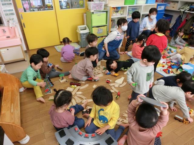 その後は、お部屋でトーマス玩具やブロックを使った遊びを楽しみましたよ!