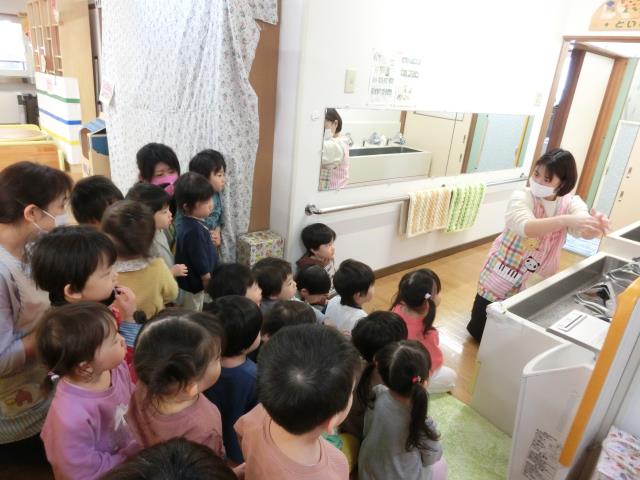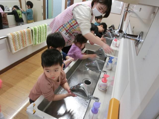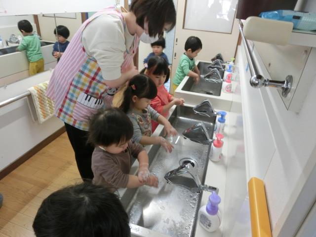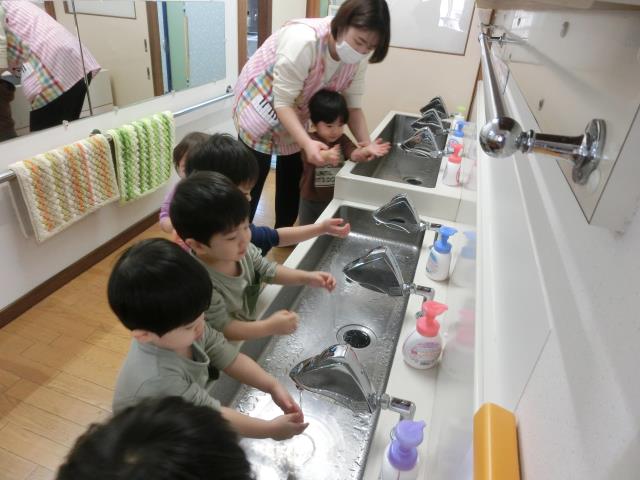 今日のたんぽぽぐみは、手の洗い方について確認をしました。