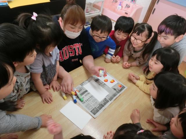 色の変化を楽しみながら、取り組んでいた子ども達です。