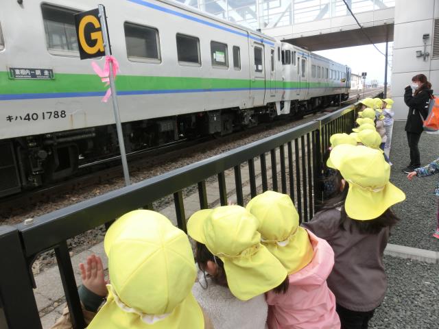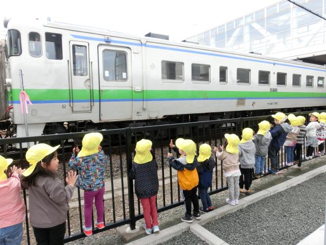 図書館横のスペースから汽車を見送り、広場内の遊具で沢山遊んで来ました。