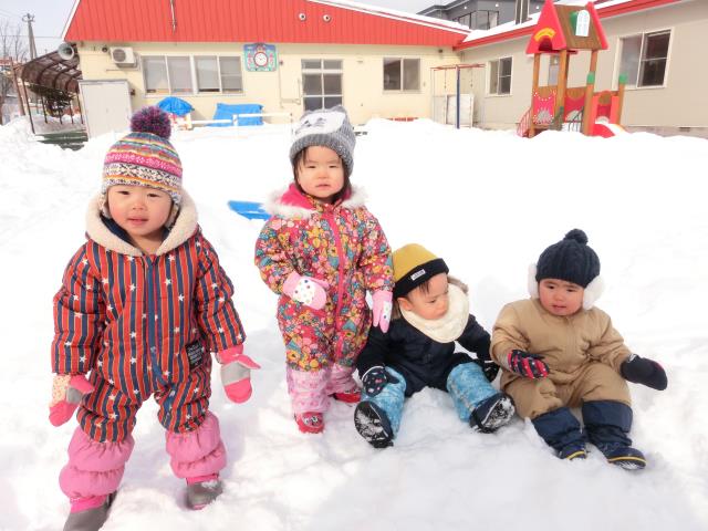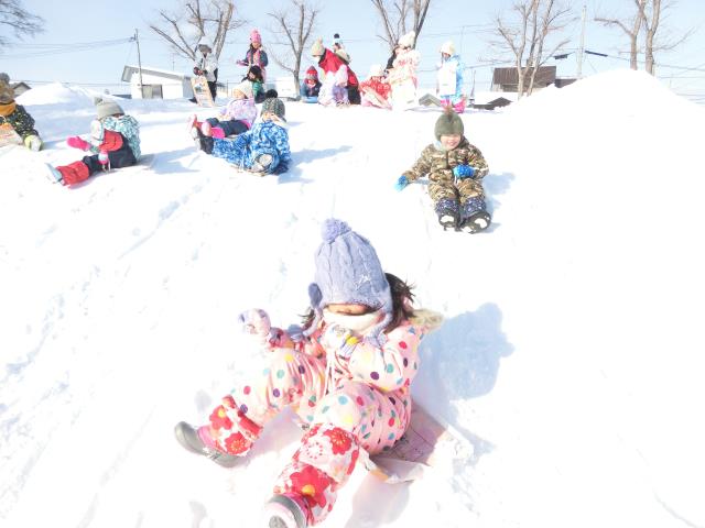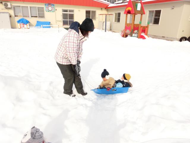 雪遊びは、そりに乗ったり雪の上を歩き、体を動かしてきましたよ。