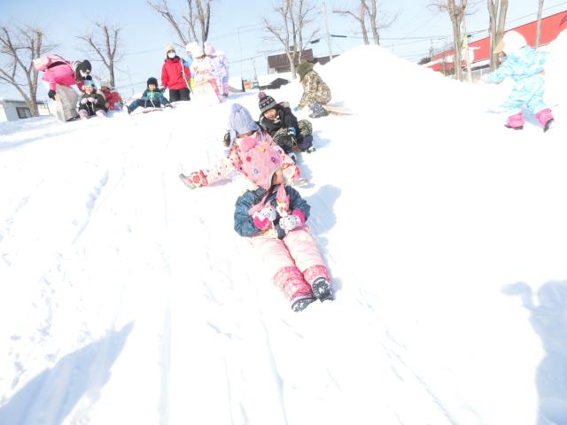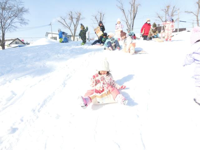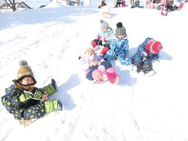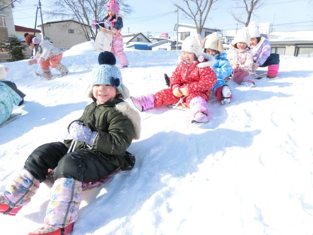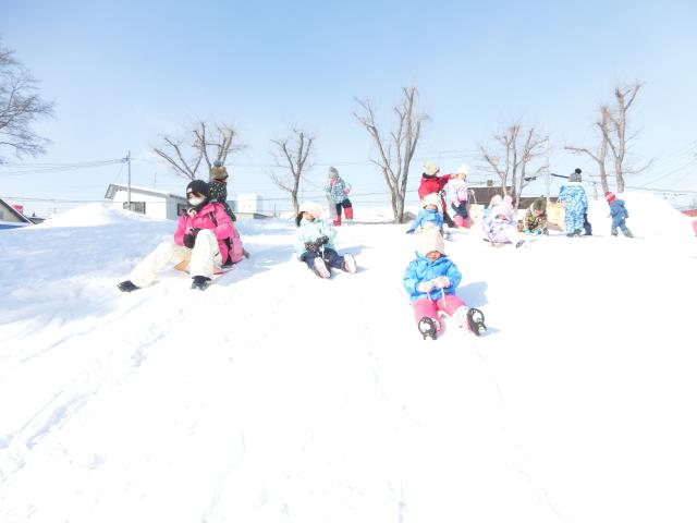 今日のちゅうりっぷぐみは、なかよし公園へ行き、そり滑りを楽しみました。