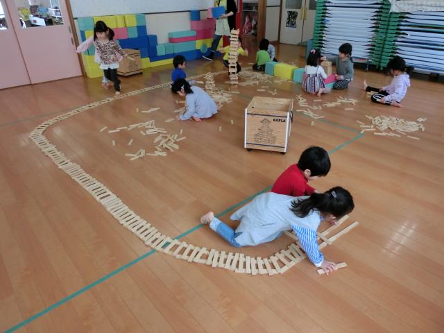カプラはお友だちと協力して、高く積み上げたり、長い線路を作りましたよ。