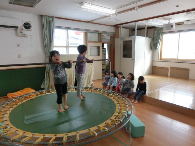 トランポリンで遊んでいたお友だちは、自分達で数を数え、順番を守って遊ぶことが出来ましたよ。