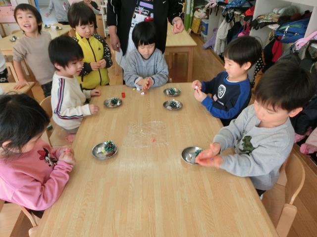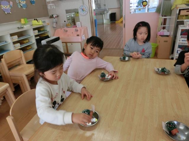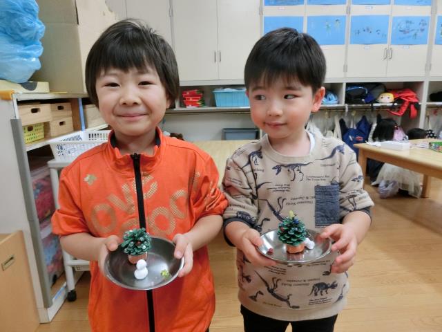 さくらぐみは、まつぼっくりで作るツリー製作に取り組みました。