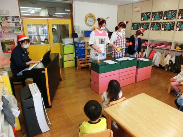 演目はお遊戯会で披露した曲になりますが、みんなクリスマスバージョンにおめかし!