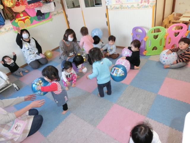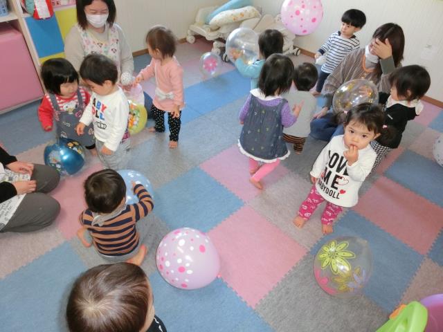 ひよこぐみは、お誕生のお友達が居なかったため、皆で風船遊びをして楽しみました。