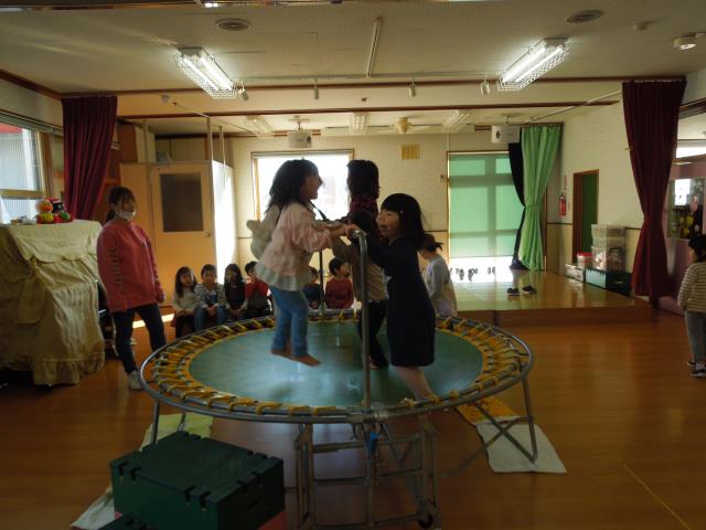 トランポリンでは、元気いっぱいジャンプ!ジャンプ!汗だくで遊んでいました。