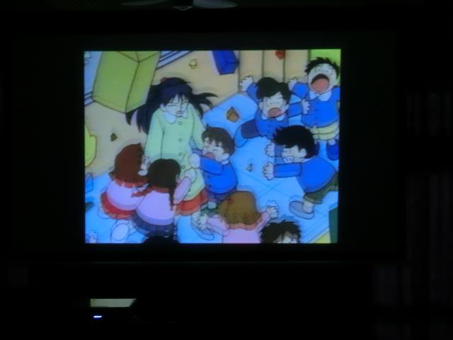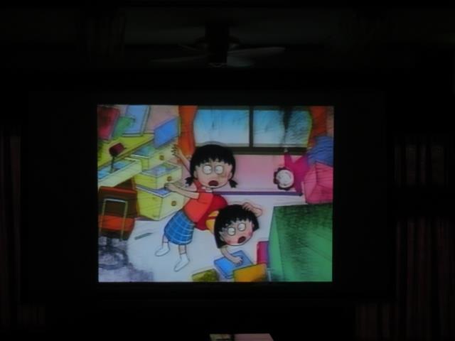 0・1・2歳児は『ちびまる子ちゃんの地震を考える』3・4・5歳児は『地震は日本の名物』を観ています。