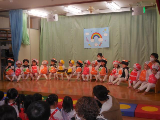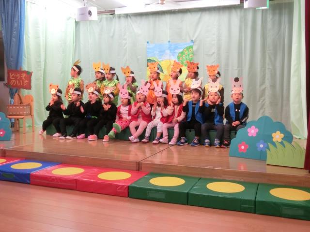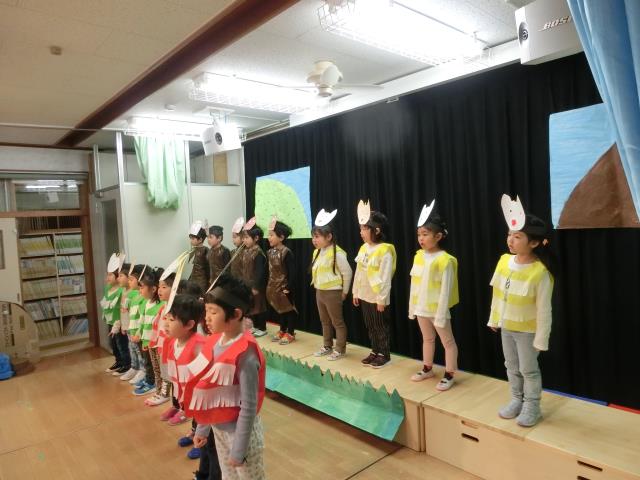 お客さんがたくさんいることに照れてしまうお友達もいましたが、セリフや歌を元気いっぱい発表しています。