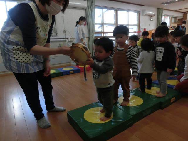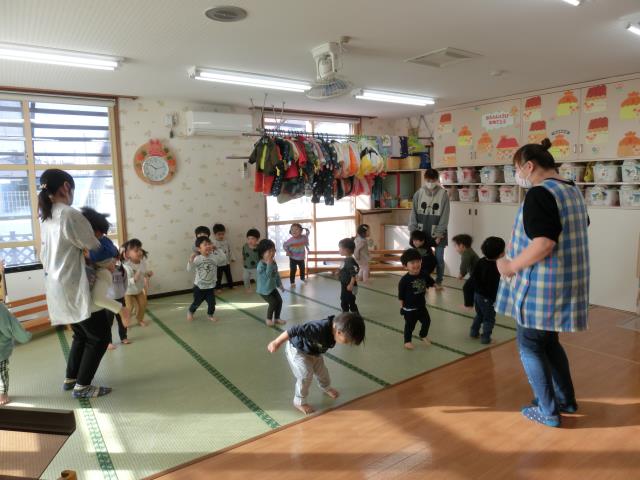 ひよこ・つくしぐみは手遊びとお遊戯の発表を。