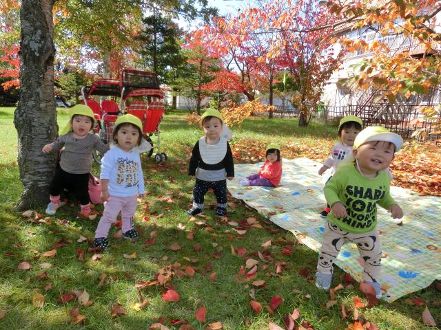 お山を登ったり、広い芝の上を走りまわったり、落ち葉をひろったり。
