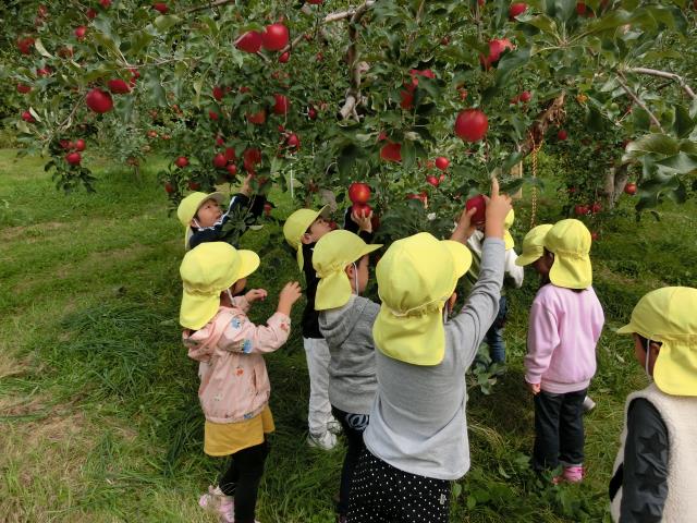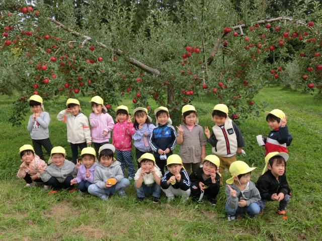 園長先生からお約束事を聞いた後、「大きなりんごを採ろう!!」と、元気にりんごの木へ向かっていったさくら組さん。