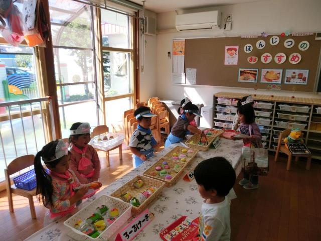 お店屋さんとお客さんを交代し取り組んでいます。