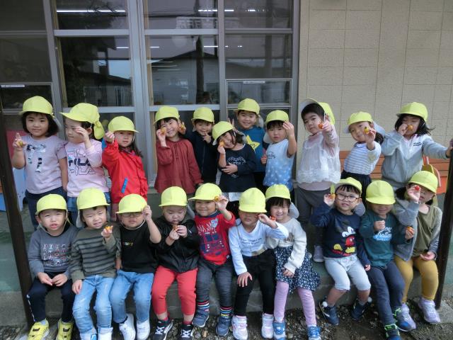 収穫中、青虫を見つけたさくら組さん。