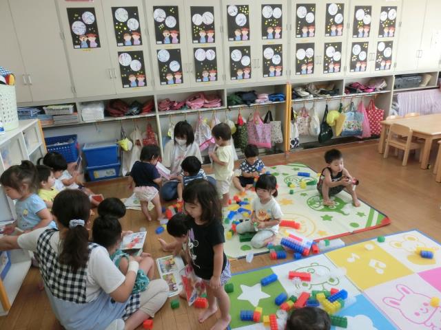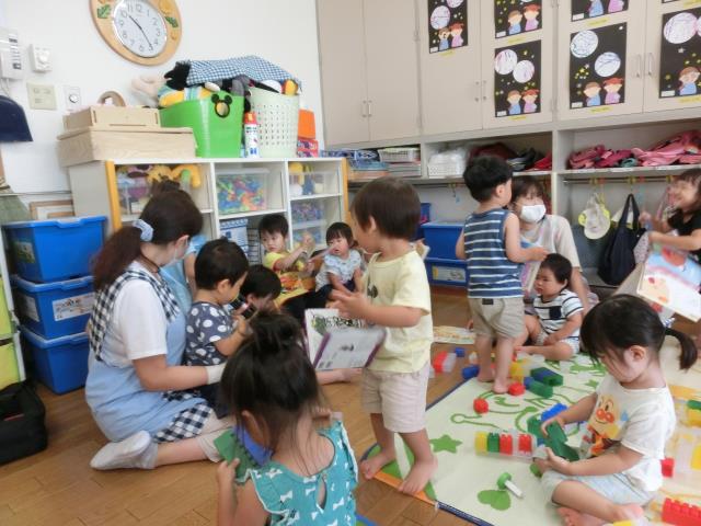 今日のひよこぐみ・つくしぐみ・たんぽぽぐみは、交流会として室内あそびをしています。