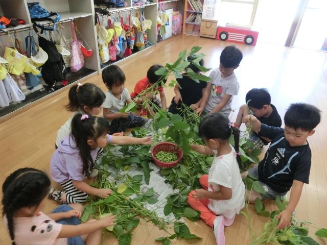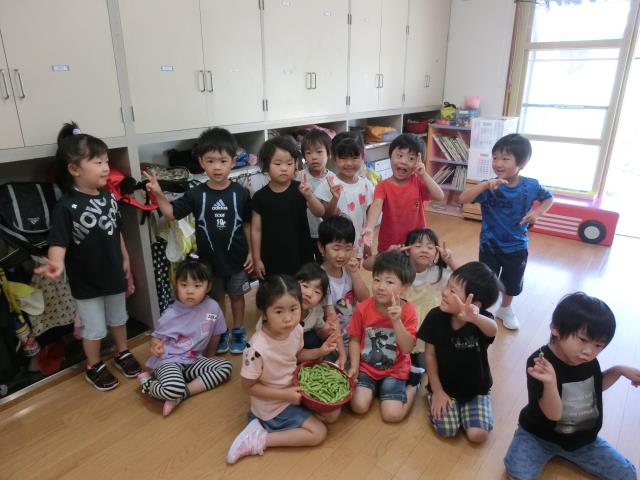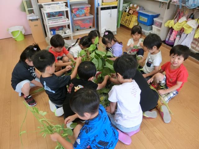 大量の枝豆に大喜びのさくらぐみさんでした。