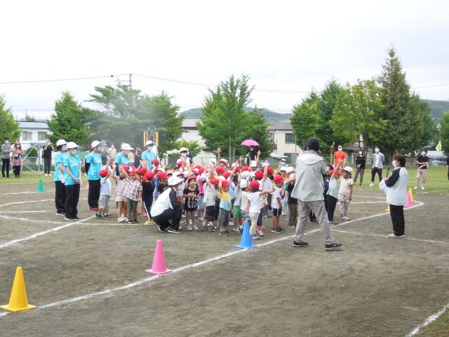 途中パラパラと小雨が降ることもありましたが、保護者の皆さまのご協力もあり、無事に最後まで発表することができました。