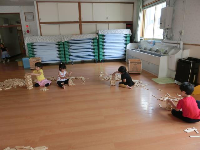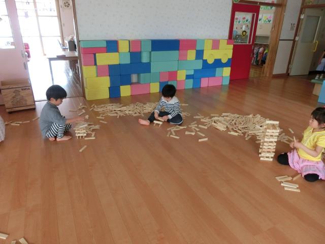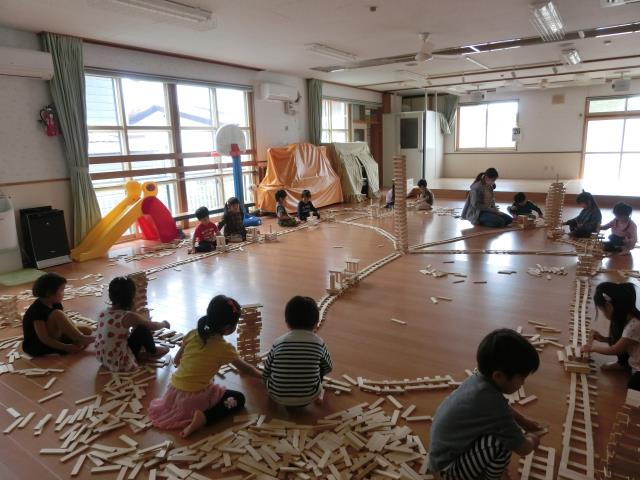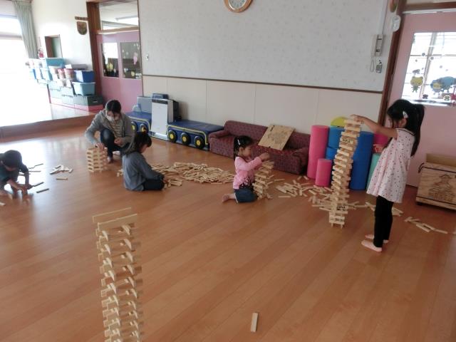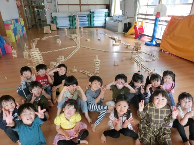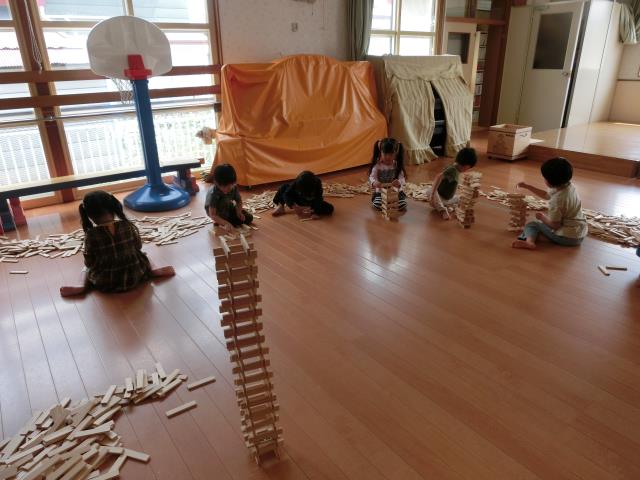 ホールを使えたさくらぐみは、いつもとはちょっぴり違って『カプラ』をやってみました。