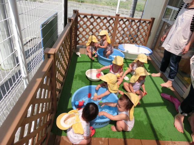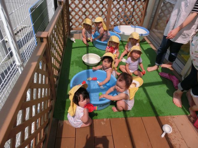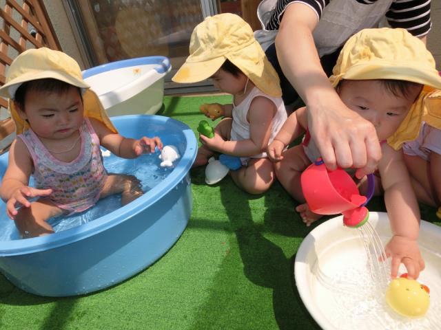 ひよこぐみさんは、2回目の温水あそびをしました。