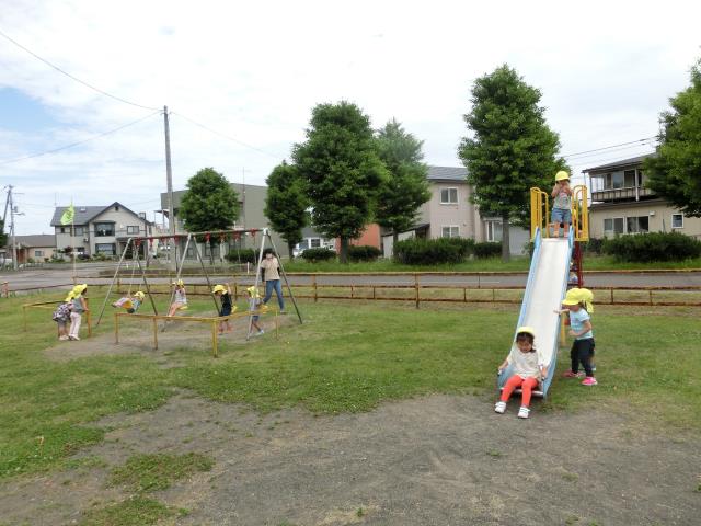 鬼ごっこをしたり、ブランコや滑り台などの遊具で元気いっぱい体を動かして遊びましたよ。