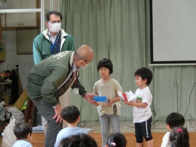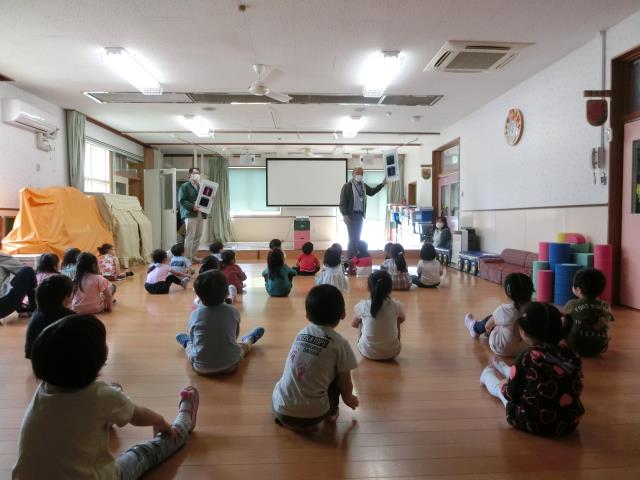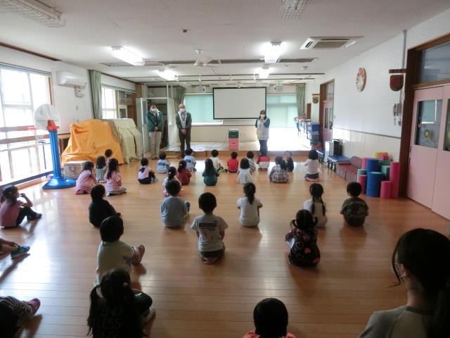 新型コロナウイルス感染症拡大防止の為、ちゅうりっぷ組さんとさくら組さん、すみれ組さんの2回に分けて行いました。