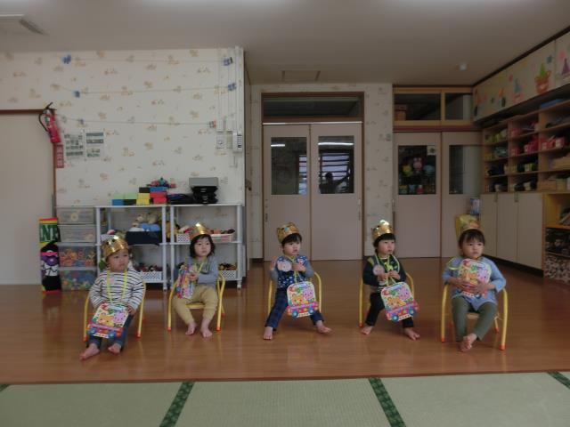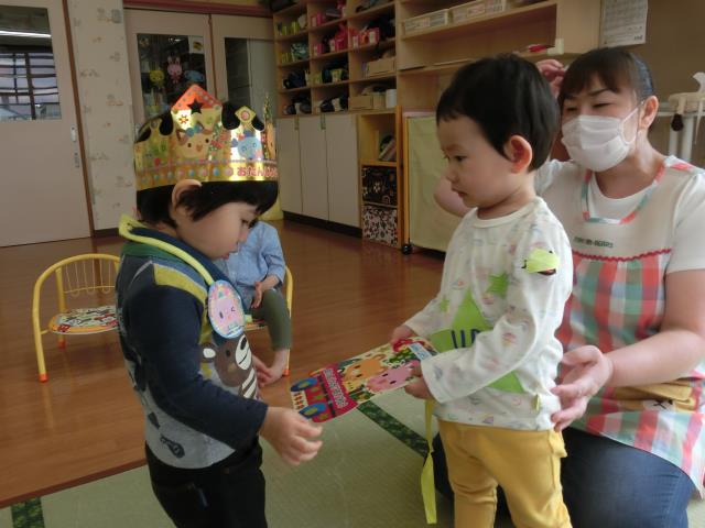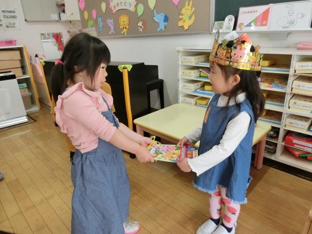 ちゅうりっぷ組さんは、インタビュー後、大好きなお友達からお誕生カ-ドをもらったり、クラスみんなから歌のプレゼントがありました。