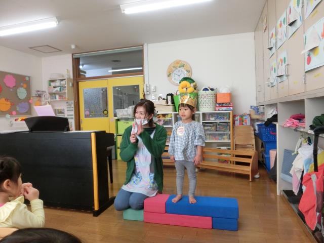 たんぽぽ組さんは、みんなで歌を歌ってお祝いをしたり、お誕生の子はインタビューにて、ちょっと照れながらもしっかり答えていましたよ!!