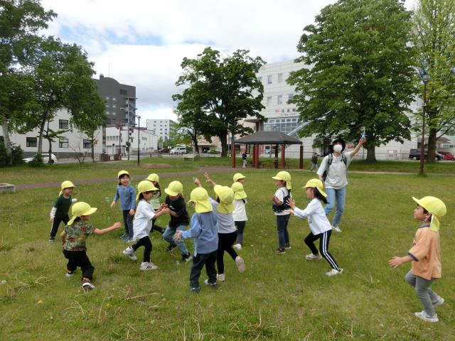 今日のさくらぐみは、北見市の街の中探検第2で、小公園周辺までお散歩しています。