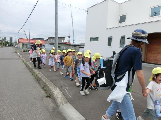 終始大興奮で、様々な発見を楽しんでいましたが、声の大きさや交通ルールを意識しながら、楽しくお散歩しています。