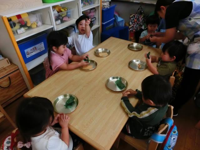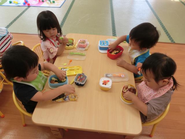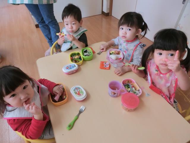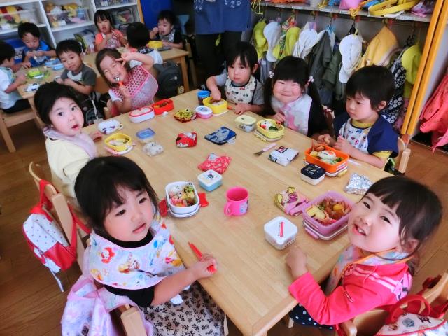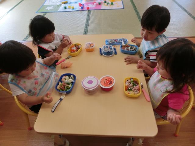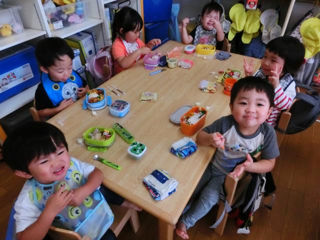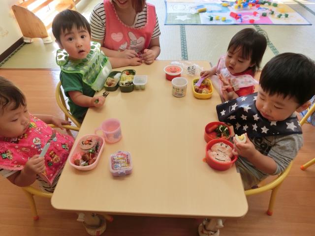 お弁当は朝から楽しみにしていた子が多く、「おいしい!」「んま!んま!」ともりもり食べていましたよ。