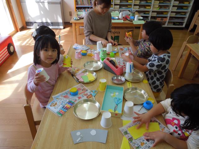 製作では「ロケット」や「ジャンピングうさぎ」を作り、高く飛ばそうと力が入っていた子ども達でした。
