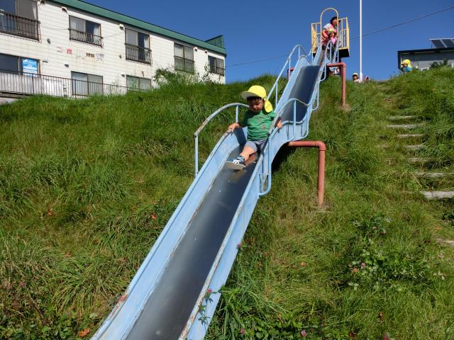つくし組は「わんぱく公園」まで行き、皆で長~~い滑り台を楽しんできました。