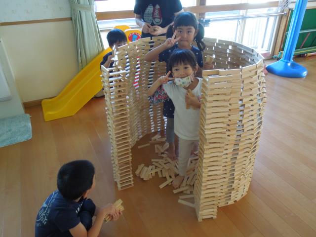 園内ではカプラで「かまくり作り」に挑戦したり、好きな物を作って楽しみました。