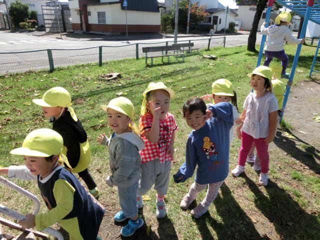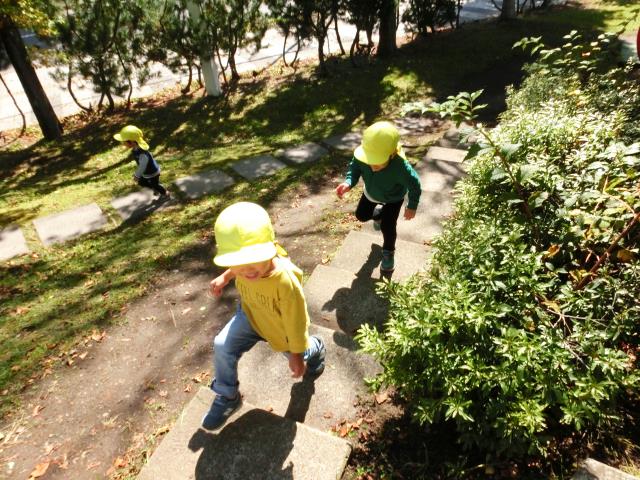 途中、イチョウの木や銀杏の実を見て、秋を感じたり、ロ-ラ-滑り台に、存分に乗って楽しんできました。