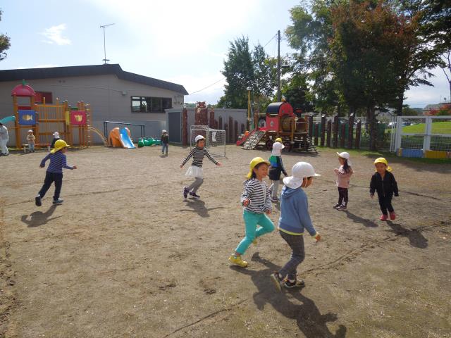 園庭では「サッカ-」や「鬼ごっこ」で大盛り上がり。歓声が響いていましたよ。