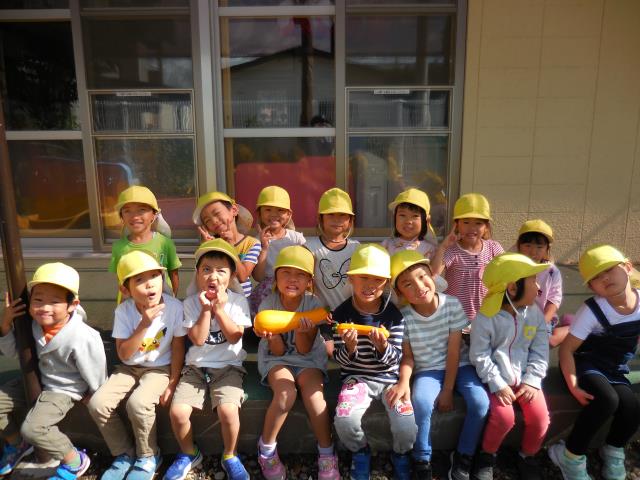 出発前に‟ズッキーニ”を収穫し、給食先生に調理をお願いしていった さくら組さん。