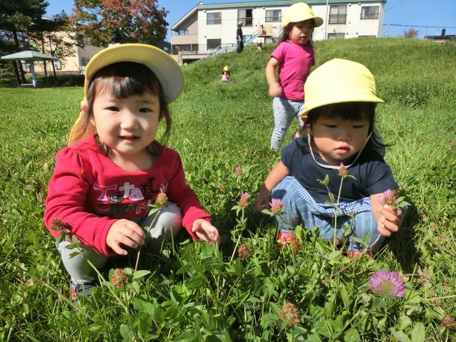 お花を摘んだり、草や葉の形を眺めて楽しむ子もいました。