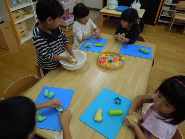小麦粉粘土では、回を重ねる事にこねるのが上手くなってきた子ども達。あっという間に仕上げていましたよ。