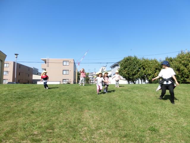 山まで思いっきりかけっこをして沢山 体を動かしたり、滑り台やブランコなど好きな遊具にも乗って、たっぷり楽しんできました。