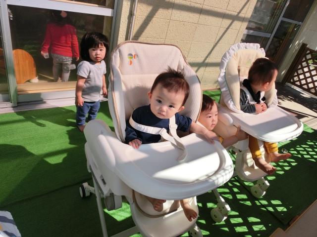 風邪気味のお友達は、テラスで少しだけしゃぼん玉を見て楽しみました。