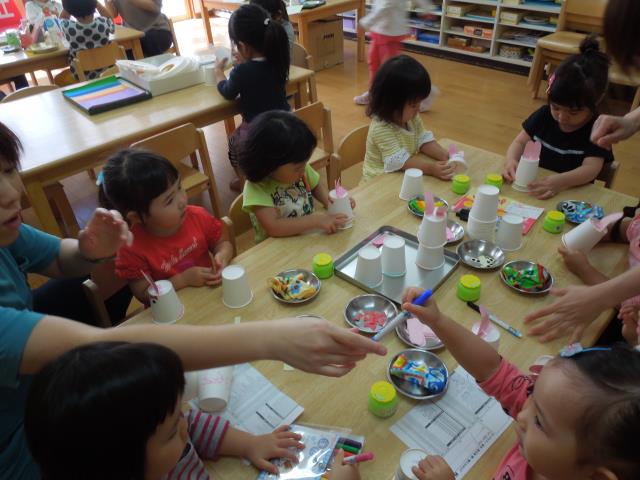 たんぽぽさんは、お店屋さんごっこの時のおみやげの1つ‟キャンディー”作りをしました。