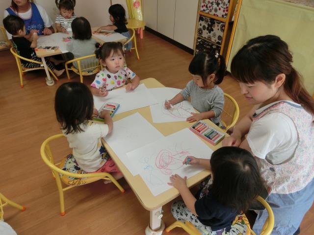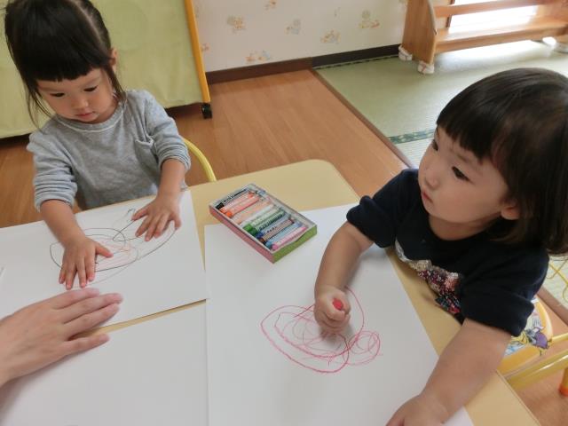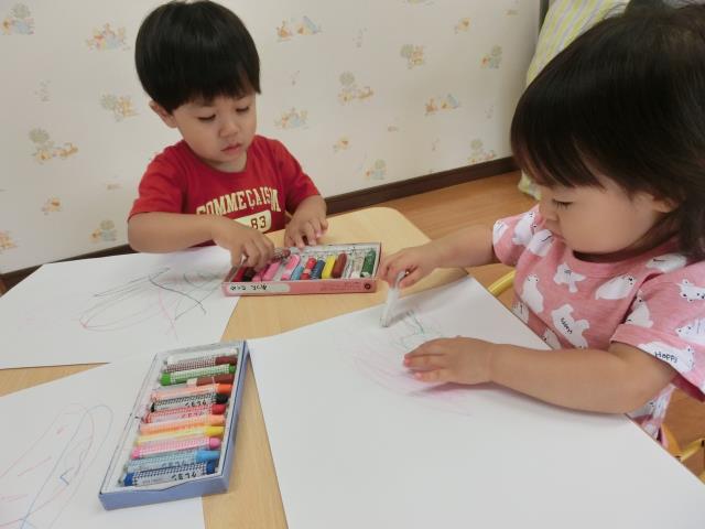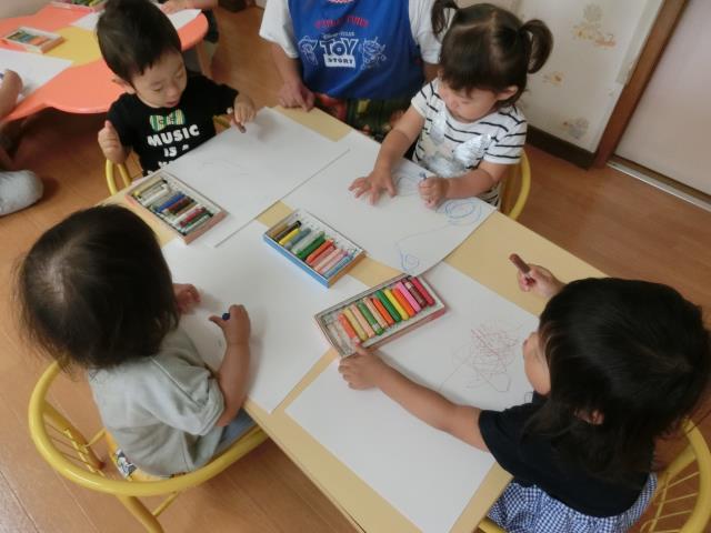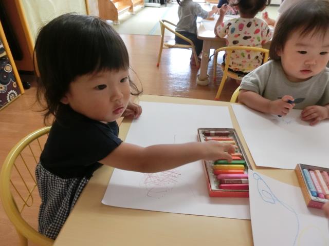 つくし組さんは、初めて『クレヨン』を使って、絵を描いてみました。